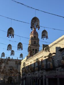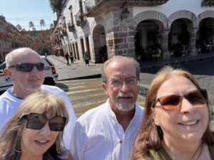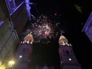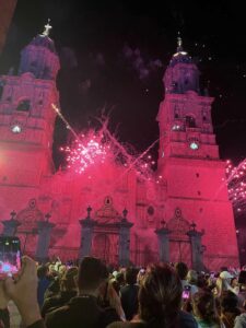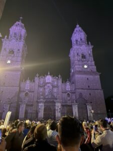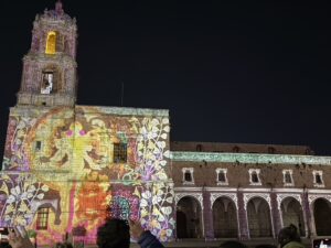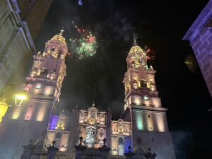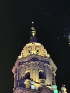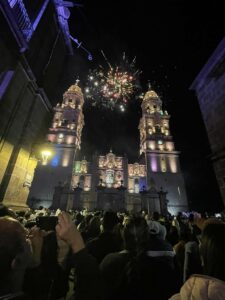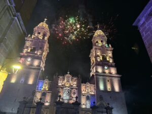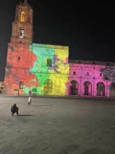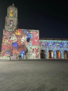 We headed to Morelia which is 4 hrs west of Mexico City. It is still a big city with many old world bldgs and stone cobbled sts. Much of it reminds me of Europe. On Saturday night they have a big light show with fireworks on the Cathedral. Than after that a few blocks away another one on the Historic Mexican Arts & Crafts Bldg.